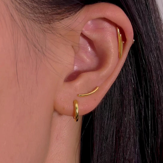 Modern minimalism meets celestial charm. The Crescent Duo Bar earrings feature a graceful moon curve with two floating bars, creating a delicate threader effect.