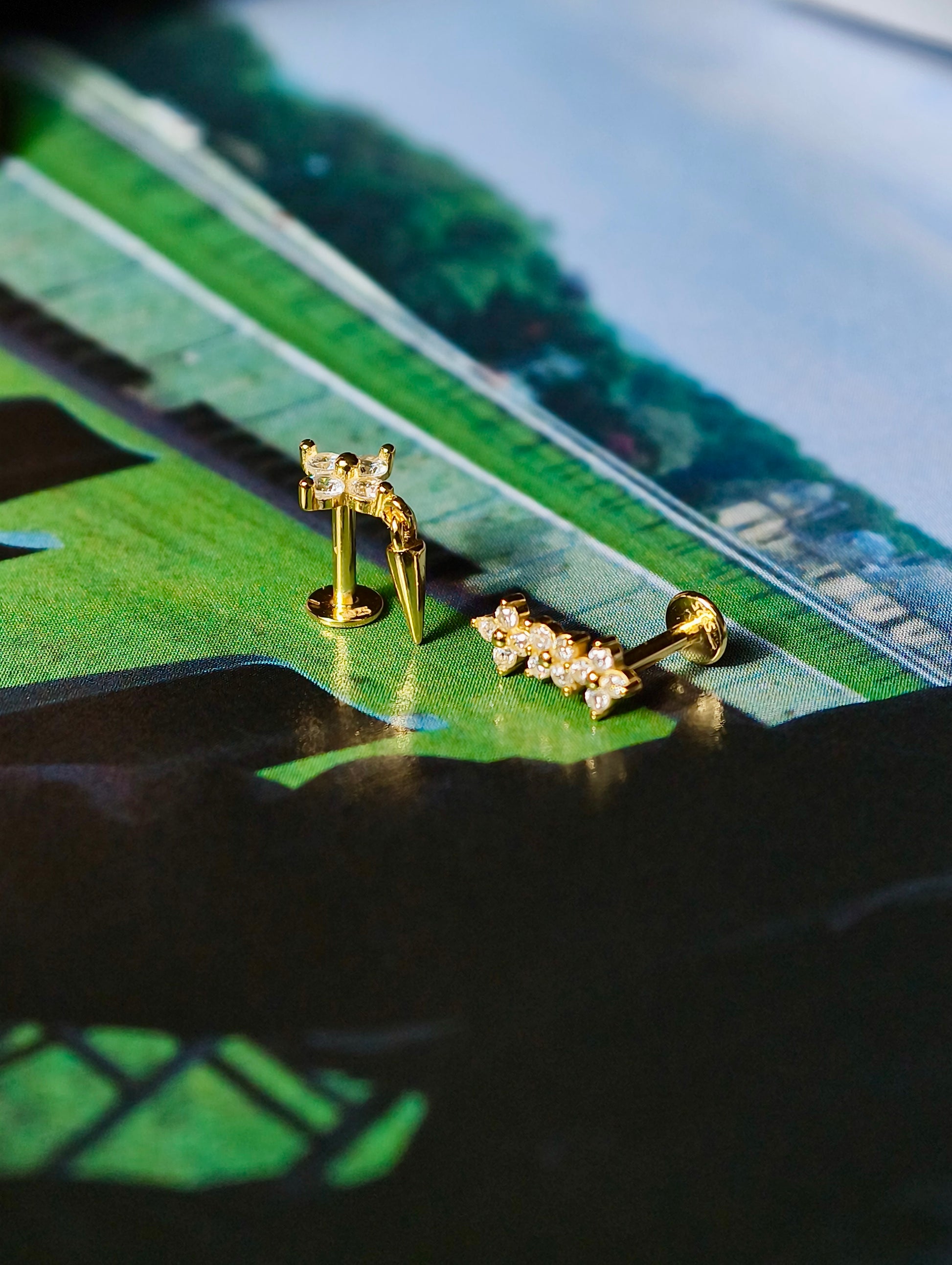 Elevate your piercing collection with our Floral Spike Flatback Earring, crafted for both style and comfort. Designed with a secure flatback, this earring is perfect for everyday wear in cartilage, tragus, helix, conch, or lobe piercings.