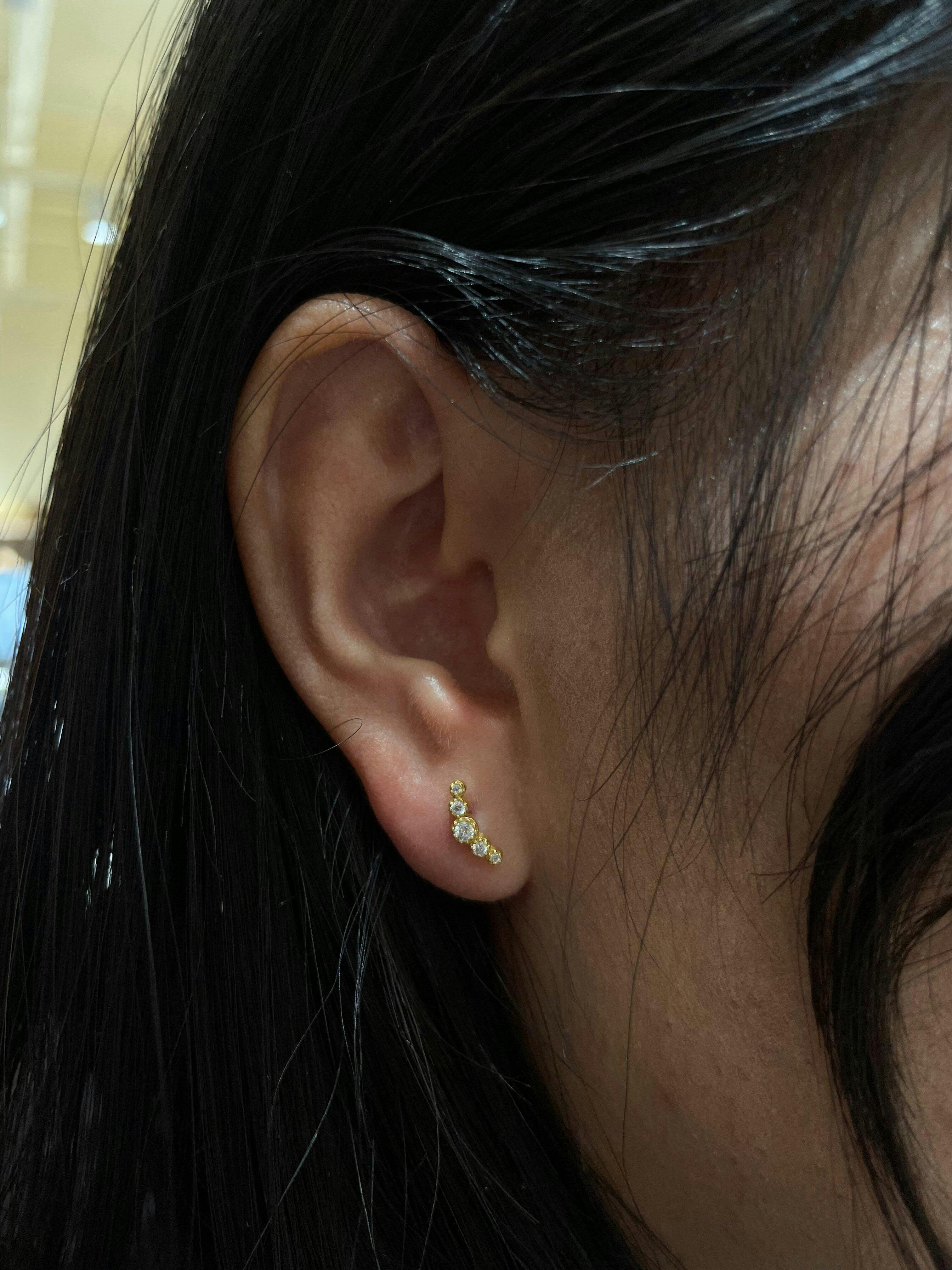 Elevate your piercing collection with our Gardien Curve Bezel Flatback Earring, crafted for both style and comfort. Designed with a secure flatback, this earring is perfect for everyday wear in cartilage, tragus, helix, conch, or lobe piercings.
