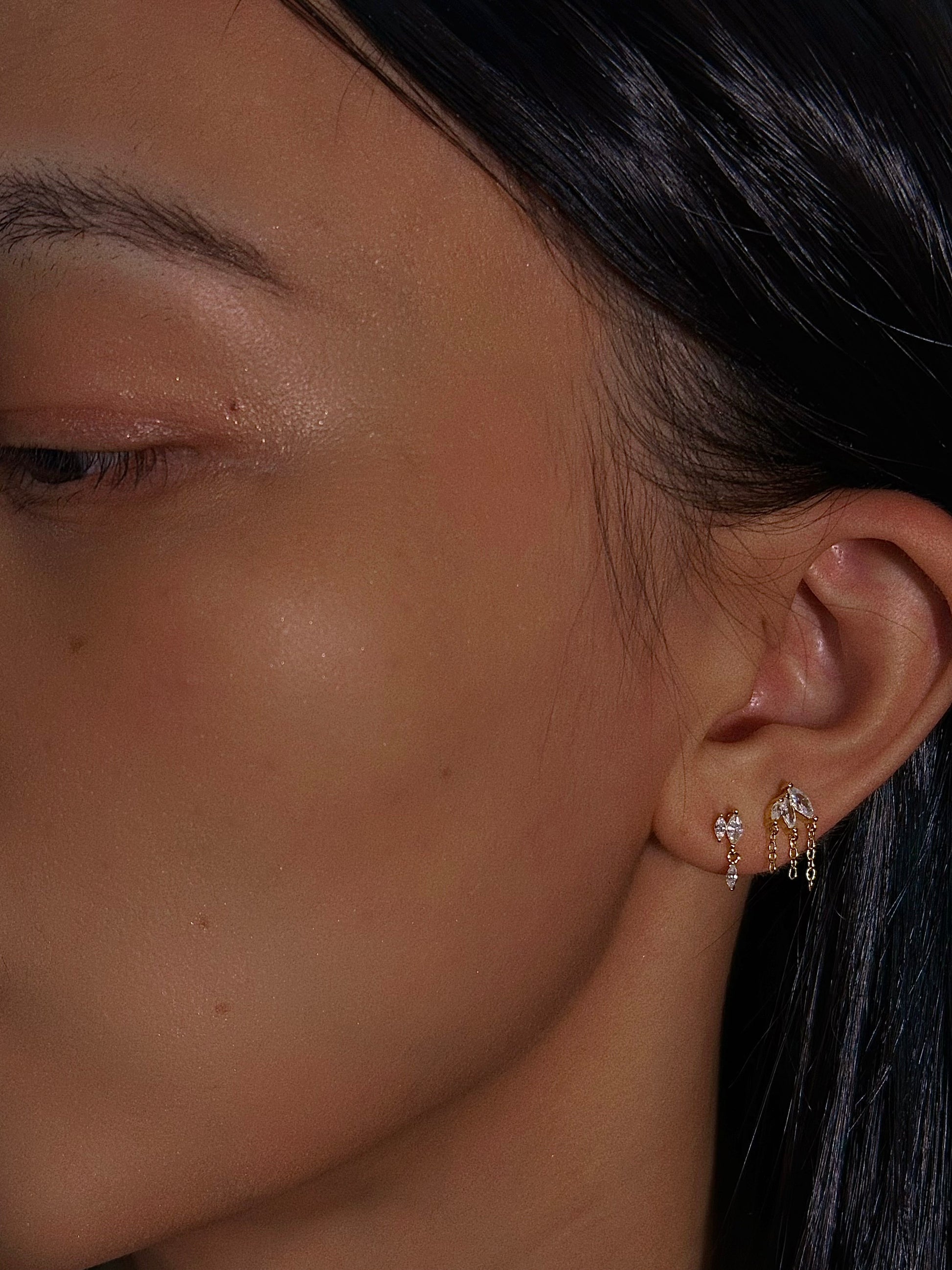 A waterfall of geometric sparkle, designed for your ear. This stunning 16G flatback earring features a tassel of marquise-cut crystals, bringing a touch of modern elegance and dynamic light play to your curated collection.