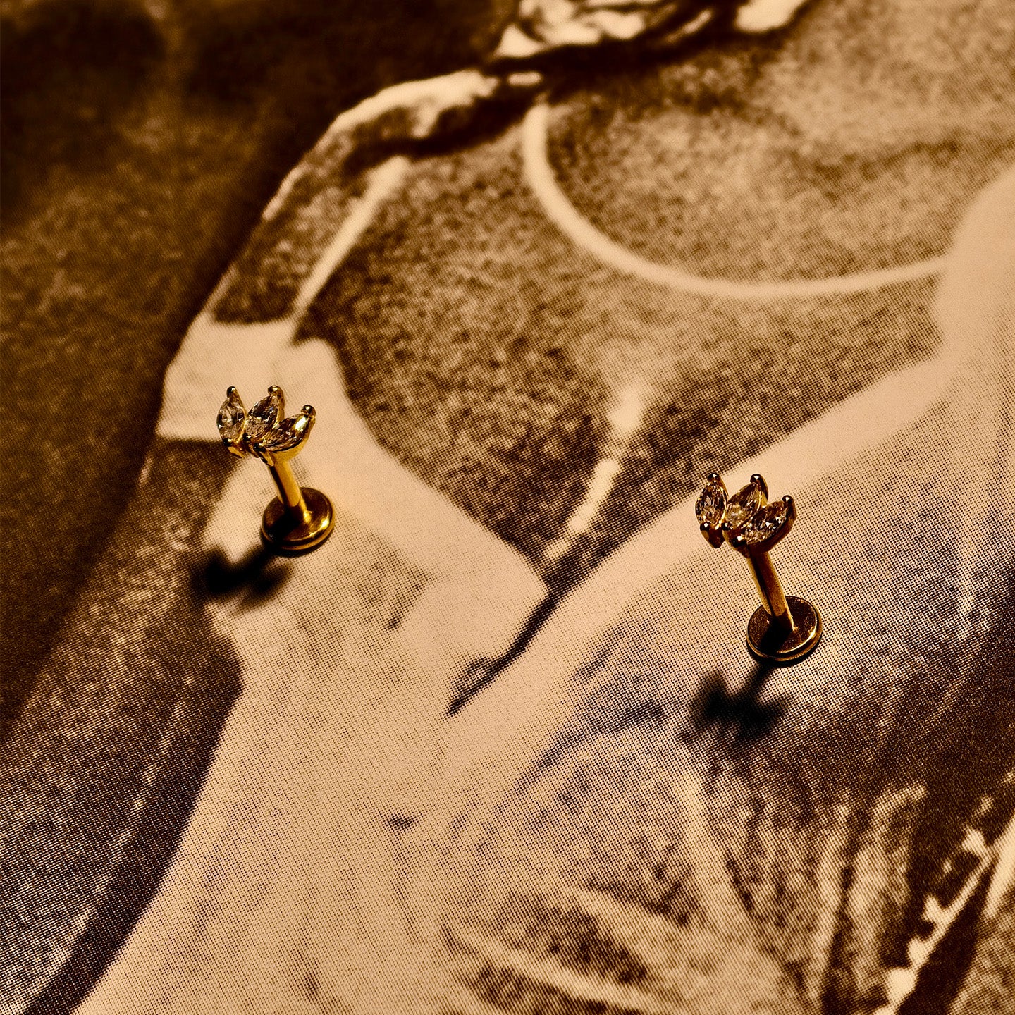 Elevate your piercing collection with our Marquise Trio Flatback Earring, crafted for both style and comfort. Designed with a secure flatback, this earring is perfect for everyday wear in cartilage, tragus, helix, conch, or lobe piercings.