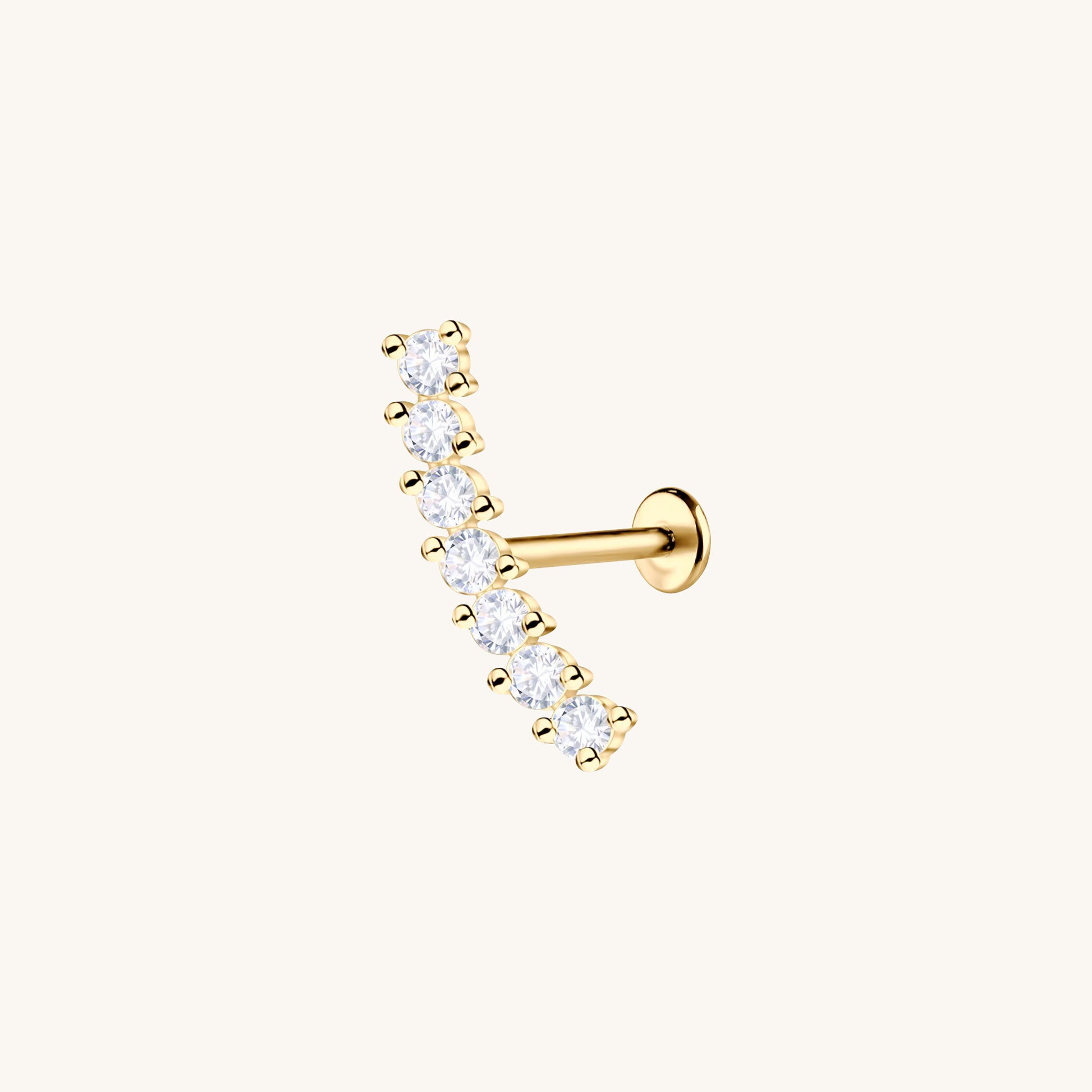 Elevate your piercing collection with our Pavé Curve Flatback Earring, crafted for both style and comfort. Designed with a secure flatback, this earring is perfect for everyday wear in cartilage, tragus, helix, conch, or lobe piercings.